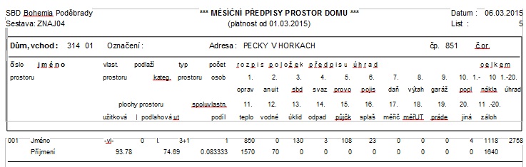 3.sbd = poplatek za správu objektu (odměna pro SBD Bohemia) - 130Kč (změna na 150Kč)
