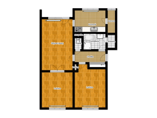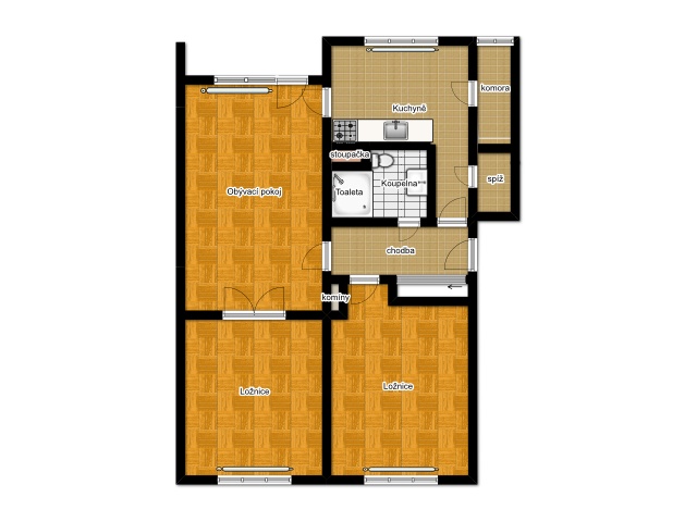 2D a 3D (Floorplanner) provedení bytové jednotky zde